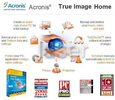 The Acronis True Image will provide complete PC protection: back up your entire Windows based PC, plus your data, applications, settings and OS! Acronis True Image is an award-winning backup and recovery solution for a reason: it protects your PC with less work and allows you to recover from viruses, unstable software downloads and failed hard drives more quickly than any other solution. Create an exact copy of your PC and restore it from a major failure in minutes, or back up selected files and recover it even faster.Acronis True Image Home is an award-winning backup and recovery solution for a good reason: it protects your PC after just one click and allows you to recover from viruses, unstable software downloads, and failed hard drives. Create an exact copy of your PC and restore it from a major failure in minutes, or back up important files and recover them even faster.New Features:* New! One-click protectionInitially, you decide what, where and when to back up. After that, backups occur automatically or with just one click.* New! Full text searchSearch for file name and/or content within an archive, using Windows or Google— desktop search.* Making reserve copies of your backupsYou can make reserve copies of your backups and save them on a network drive, or a USB storage device. You have a choice of making a reserve copy as regular (flat) files, a zip compressed file, and a tib file.* New! Zip archive format support availableIn addition to Acronis’ powerful TIB data compression backup format, one of the most densely compressed backup file types available to consumers, Acronis True Image Home 2009 also supports the popular ZIP format.* ConsolidationYou can define rules for consolidating your archives to reduce storage space. Merge an older full backup with several incremental backups to quickly create a new full backup; subsequent backups are based on the newly-created full backup.