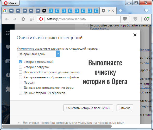 Такой вариант отлично подходит для тех, кто часто выполняет очистку истории в Опере (ведь он занимает максимум 30 секунд).