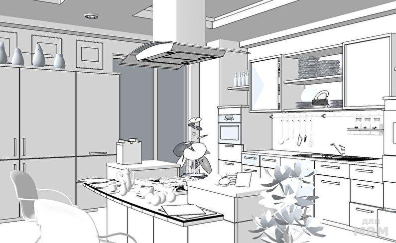 Таким образом решаем сразу две задачи: есть необходимая документация по ГОСТ, которая нужна строителям, а также готовая 3D модель, которую можем показать заказчику для согласования и при необходимости внести изменения в проект. Ведь интерьерные решения куда приятнее корректировать в объеме, чем пытаться что-то черкать на бумаге. Да и результат куда лучше.